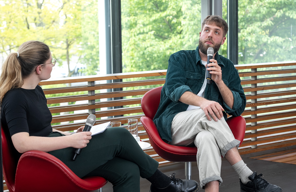Gespräch mit der Regisseurin Jorinde Dröse, Tag der offenen Tür im Niedersächsischen Landtag für die Fraktion von Bündnis 90/Die Grünen, Hannover