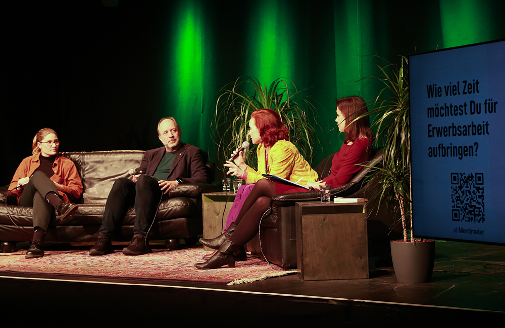 Podiumsdiskussion mit Teresa Bücker (Autorin, Journalistin), Prof. Dr. Jana Costas (Wirtschaftswissenschaftlerin) und Prof. Dr. Ing. Lars Baumann (Personaldezernent der Landeshauptstadt Hannover) im Grünen Salon der Stiftung Leben und Umwelt, Hannover
