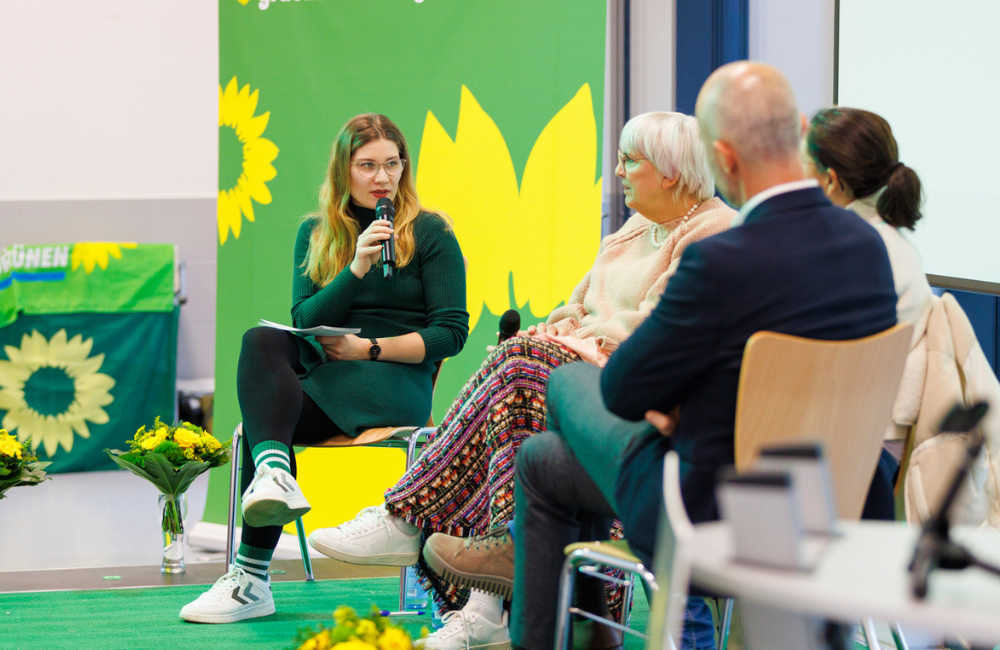 Gespräch mit Claudia Roth (Beauftragte der Bundesregierung für Kultur und Medien), Belit Onay (Oberbürgermeister von Hannover) und Filiz Polat (MdB, Parlamentarische Geschäftsführerin der Grünen Bundestagsfraktion), Regionsmitgliederversammlung Bündnis 90/Die Grünen, Hannover